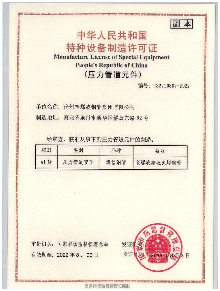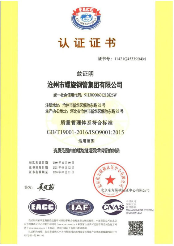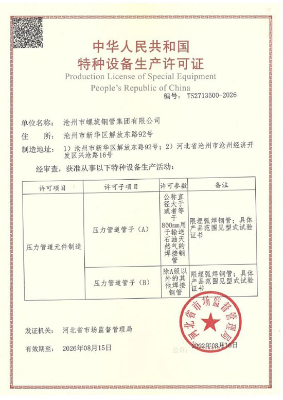 歡迎進(jìn)入滄州市螺旋鋼管集團(tuán)有限公司 主營產(chǎn)品:螺旋鋼管 石油管道螺旋鋼管 出口螺旋鋼管 天然氣管道螺旋鋼管
