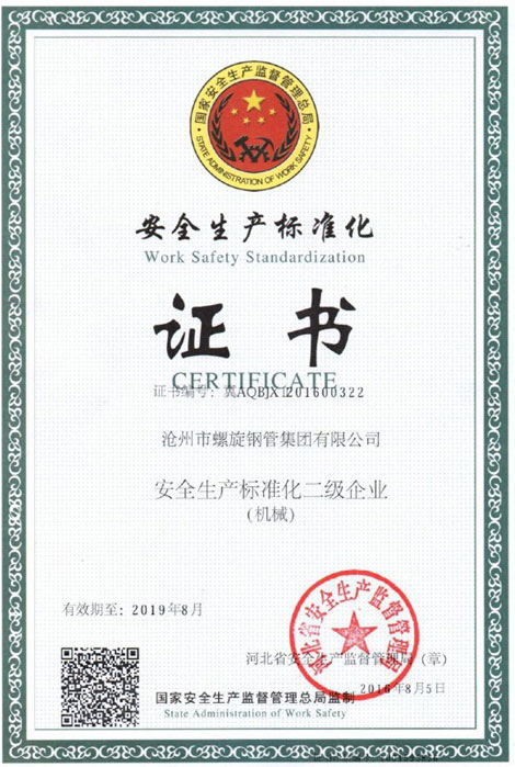 安全生產(chǎn)標(biāo)準(zhǔn)化證書