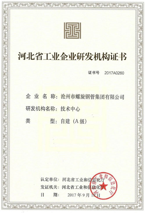 河北省工業(yè)企業(yè)研發(fā)機(jī)構(gòu)證書